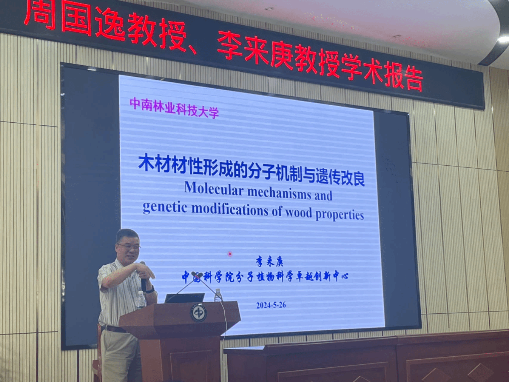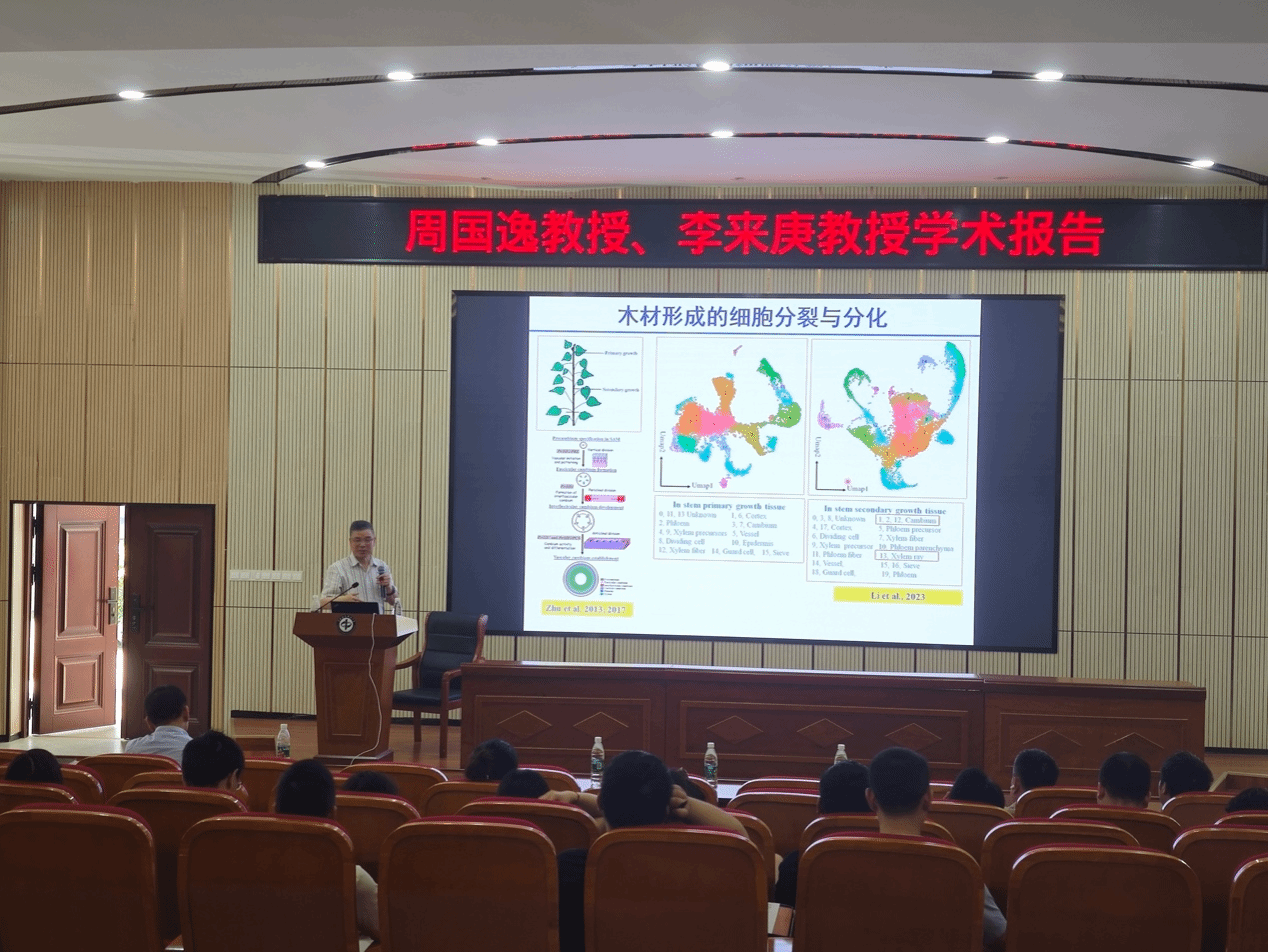 李来庚教授是我国著名的植物分子生物学家,长期致力于木材形成的分子机制研究,在木材材性调控和遗传改良方面取得了一系列重要成果。本次报告中,李教授围绕木材形成的分子机制、材性调控的关键基因以及遗传改良的应用前景等方面,为我校师生带来了一场精彩的学术盛宴。