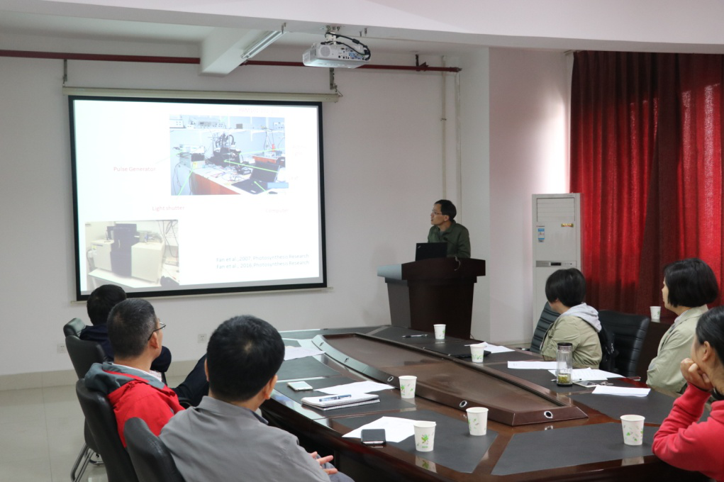 4月16日上午,澳大利亚国立大学樊大勇副研究员应邀在南方林业生态应用技术国家工程实验室作了题为“Tracking the fate of absorbed light photons in photosynthesis – in vivo measurement of electron fluxes and regulation” 的学术报告。报告详细介绍了光合作用中电子传递机制,NPQ建立的可能机制,以及介绍了他在光合测定仪器研制的一些成果。樊大勇与到会师生进行了深入的讨论,对老师和同学们提出的问题一一解答。他的报告深入浅出,使人深受启发。