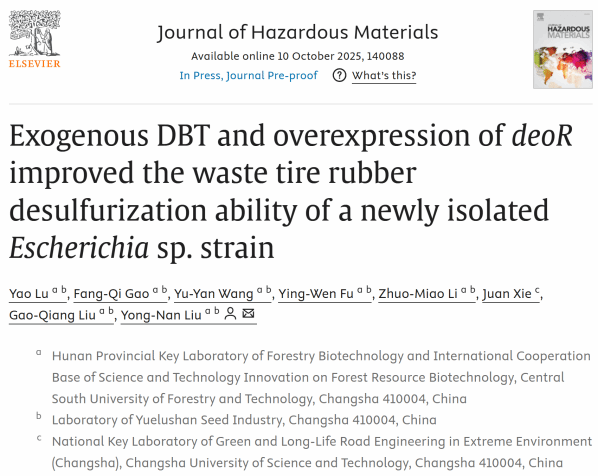 微生物团队在国际环境领域权威期刊《Journal of Hazardous Materials》发表微生物对废弃轮胎橡胶高效脱硫的研究成果