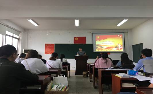 贺书记为大家主讲了最后一次党课。在党课中,贺书记提到,毕业生党员们应做“四讲四有”的合格党员,讲政治、有信念,讲规矩、有纪律,讲道德、有品行,讲奉献、有作为。要重视世界观、人生观、价值观这个“总开关”问题,它关乎思想源头,从根本上决定着党员干部的作风状况和行为方式。坚持党的信仰、理想、信念及宗旨,对党应心存寄托、真诚信赖,而非对共产主义事业产生动摇,且应强化红线意识,坚守底线思维。其次,毕业生党员代表唐星雨同志发言。言辞中表达了对党组织的热爱,以及对党组织所给予的培育的感激,并表达了在将来奋进的道路上他们一定会恪守初心、砥砺前行。随后,在校学生党员代表李沁园同志发言,为即将毕业的党员同志们表达最真挚的祝愿。活动最后,毕业生党员代表王珏同志带领全体毕业生党员重温了入党誓词,重温誓词勾起最初入党时的回忆,也更坚定为党组织奉献终身的决心。