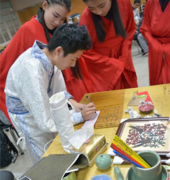 2014级经济学院的陈同学说:“虽然游园会时间不长,但今天体验了茶艺表演,学到些繁体字,玩了陶艺拉胚,还见识了古代成人礼,民间传统文化着实好好体验了一把,而且还拿到了许多奖品,太赞啦。”
