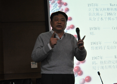 讲座由生科院党总支书记舒桂珍主持。授课过程中,章教授将精美的PPT课件章节转化为通俗活泼的语言,不时插入案例讲解,让学生们感受到现代生物技术的应用与日常生活密切联系,课堂氛围活跃轻松;通俗的讲课风格和丰富贴切的实例,让在座的老师和学生都受益匪浅,他多次强调,对待科学要严谨,对待生活和工作要思路开阔,严谨做学问的同时敢于创新。在互动答疑的环节中,章书记耐心的解答了在场学生提出的问题,并教授了大家一些关于思考问题、解决问题的方法,“让某种转基因植物在沙漠中疯狂的生长目前只是个梦想,等着你们去完成!”之类幽默的话语与殷切的期望赢得了场下师生热烈的掌声。