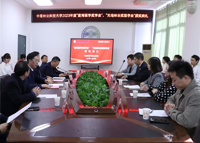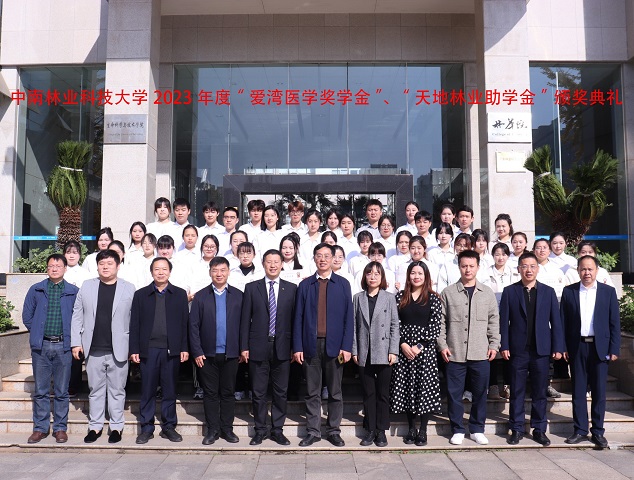 11月28日上午,中南林业科技大学2023年度“爱湾医学奖学金”、“天地林业奖助学金”颁奖典礼在树木楼B座四楼会议室隆重举行。学校副校长朱道弘、校友办主任张仕吉、生命科学与技术学院院长项文化、党委书记李红军、党委副书记贺一骄、食品科学与工程学院党委副书记潘晓杰、深圳爱湾医学检验实验室副总裁王强、广州天地林业有限公司总经理罗丹等企业代表,以及获奖及受助学生出席本次典礼。