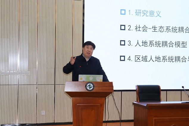 报告会上,傅伯杰院士首先介绍了研究社会-生态系统相互作用及可持续性的重要意义,强调指出了人地系统动力学是解析区域可持续发展的关键、人地系统耦合研究已成为可持续性研究的前沿。其次,傅伯杰院士依次从社会-生态系统耦合机制、人地系统耦合模型以及区域人地系统耦合与可持续发展进行了论述,并以黄土高原生态格局-过程-服务与可持续性为例,通过生态恢复和社会经济角度,提出了“社会-生态陷阱”这一概念,重新审视黄土高原过去七十年的发展问题,提供了一个新颖的视角和见解。学术报告后,傅院士耐心解答老师和同学们的提问。在全场热烈的掌声中,本次学术报告圆满结束。