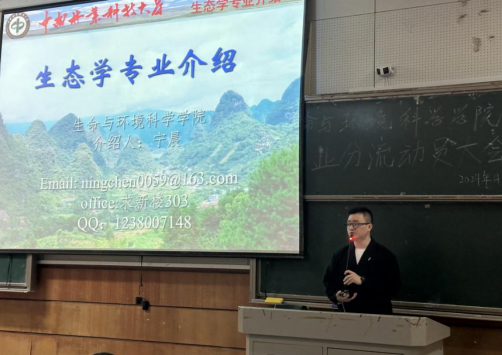 随后,环境科学系主任李芸副教授、环境工程系主任徐海音副教授、环境生态工程系主任黄超副教授,分别从各专业培养目标、主修课程、社会实践、考研就业等方面进行了详细介绍。生态系主任宁晨副教授、生物技术系主任周波教授、生物科学类系主任赵丽娟副教授先后就各专业的师资队伍、专业课程体系、未来发展等方面进行了详细的介绍,让同学们对各专业有了更为清晰的认识。