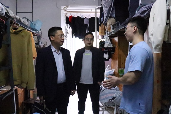 为进一步落实学校和学院关于做好五一期间安全稳定工作和疫情防控的相关要求,增强学生安全防范意识,营造健康、平安、温馨的宿舍环境,4月27日下午和晚上,学院党委书记李红军、副书记贺一骄,副院长雷丕锋和全体辅导员分两次下沉到我院学生宿舍开展安全隐患排查行动,深入了解学生思想动态,关心学生假期学习和生活安排,确保节日期间学生宿舍安全。