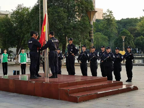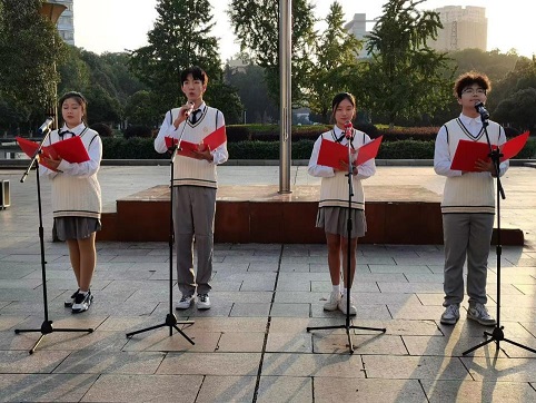 清晨七时整,仪式正式开始。校督察队的同学们迈着整齐划一、铿锵有力的步伐,护送着五星红旗正步走向旗杆,全体师生面向国旗肃立致礼。随着激昂的《义勇军进行曲》响起,师生们注视着五星红旗冉冉升起,在熠熠晨光中迎风飘扬。