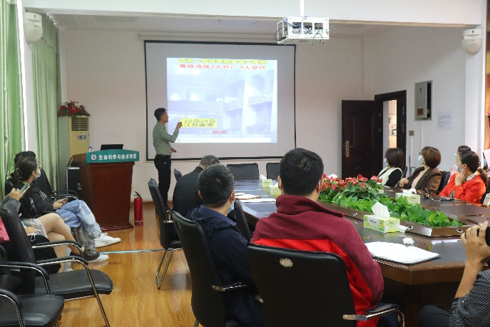 为切实加强消防安全工作,提高广大师生的安全防范意识和自救能力, 2022年11月4日下午,生命科学与技术学院在生科楼B座会议室开展了由学院教师代表和各年级学生代表参加的消防知识安全讲座和消防演练,活动由学院副院长雷丕锋主持,雷丕锋在活动中强调全院师生应高度重视消防安全,同时注意人身安全和财产安全等安全问题,积极配合学院做好消防安全等方面的工作。