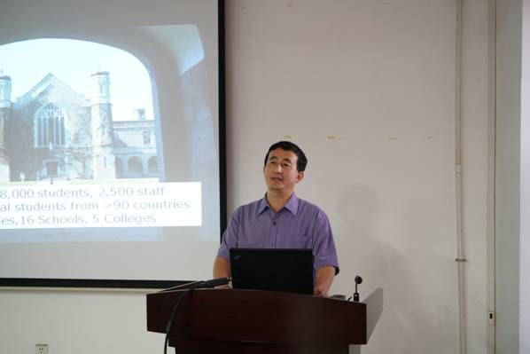 张教授在报告开始前首先介绍了他所在的爱尔兰国立大学的基本情况和他本人的学术背景与近年来的研究重点。在“土壤地球化学不同尺度的空间变化:新的机遇与挑战”报告中,张教授同在座师生一起分享了他利用GIS技术在环境污染研究中获得的令人惊喜的成果。在谈到机遇与挑战时,张教授认为现在数据分析手段更多了,但也面临的挑战更多,主要表现为数据分析时缺少假设前提、数据处理未能遵守地统计学原理、不同因素与尺度的影响以及社会经济等非学术因素的干扰等。在第二个报告中,张教授首先对薄膜梯度扩散(DGT)技术的原理作了详细介绍,然后采用多个实例展示了DGT技术在环境污染研究的广泛应用,并对DGT技术潜在的应用前景与存在问题作了深入探讨。与会师生就各自感兴趣的问题同张教授作了热烈的讨论与交流。