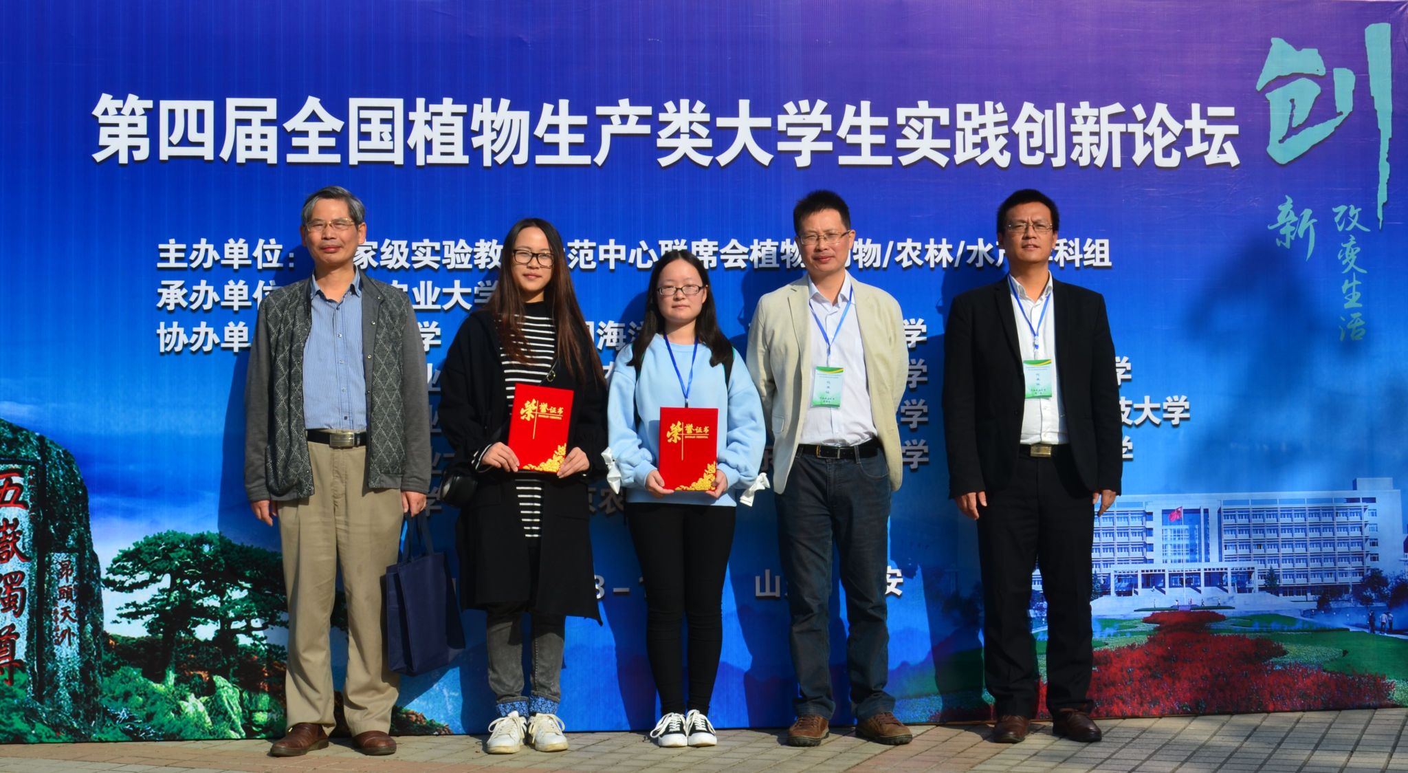 2017年10月13-15日,第四届全国植物生产类大学生实践创新论坛暨大学生创新创业训练计划项目成果展在山东农业大学召开。本届论坛吸引了来自浙江大学、中国海洋大学、南京农业大学、东北林业大学、河北农业大学、山东农业大学共计20余所高校近200名师生参会,收到学术论文102篇。论坛共评出论文一等奖10篇、二等奖20篇、三等奖30篇,选出“学生最喜欢的实践创新项目”11项。我校学子共有4项学术成果参展,并获得一等奖1项、二等奖1项,三等奖2项的好成绩。