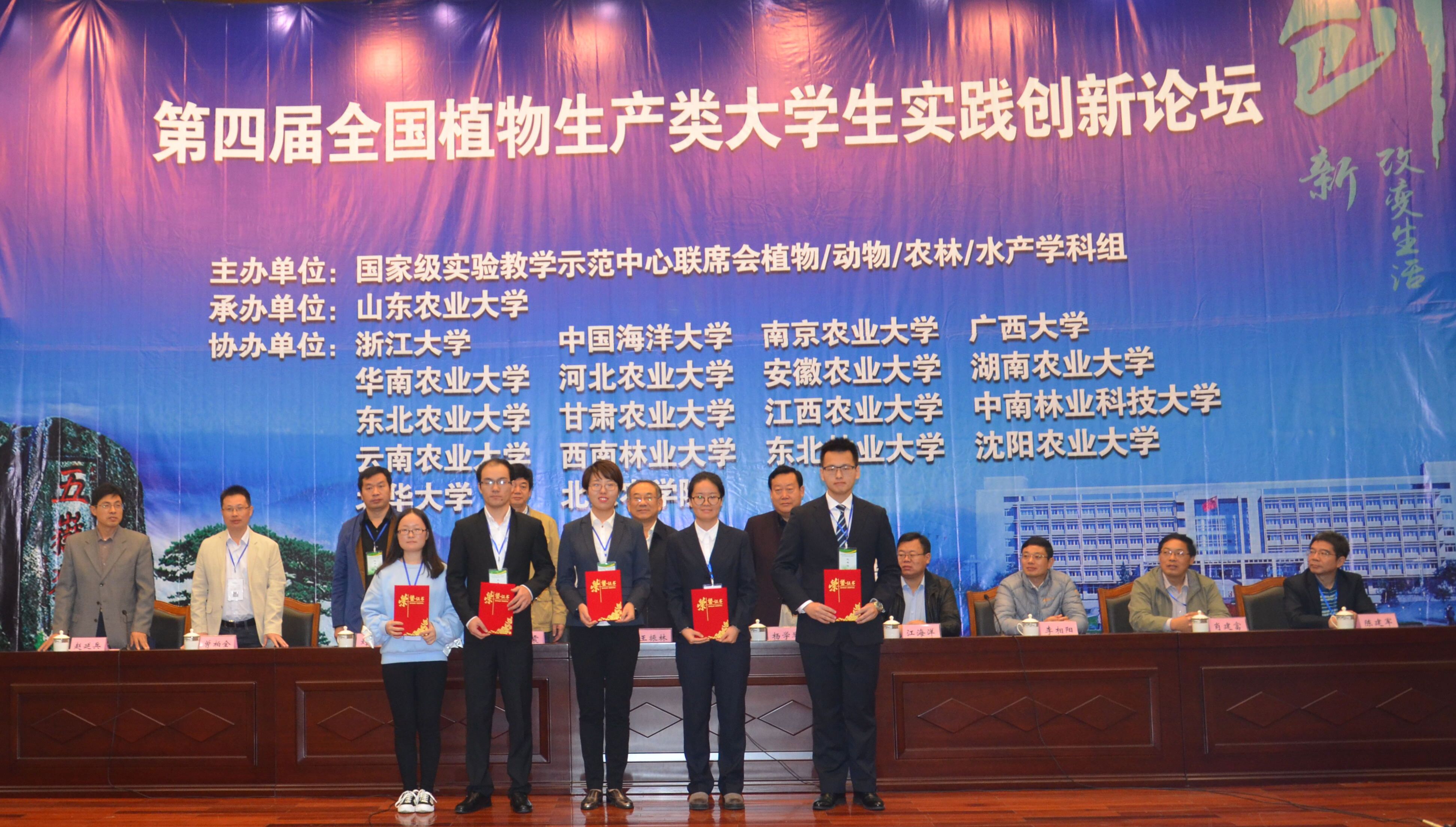 2017年10月13-15日,第四届全国植物生产类大学生实践创新论坛暨大学生创新创业训练计划项目成果展在山东农业大学召开。本届论坛吸引了来自浙江大学、中国海洋大学、南京农业大学、东北林业大学、河北农业大学、山东农业大学共计20余所高校近200名师生参会,收到学术论文102篇。论坛共评出论文一等奖10篇、二等奖20篇、三等奖30篇,选出“学生最喜欢的实践创新项目”11项。我校学子共有4项学术成果参展,并获得一等奖1项、二等奖1项,三等奖2项的好成绩。
