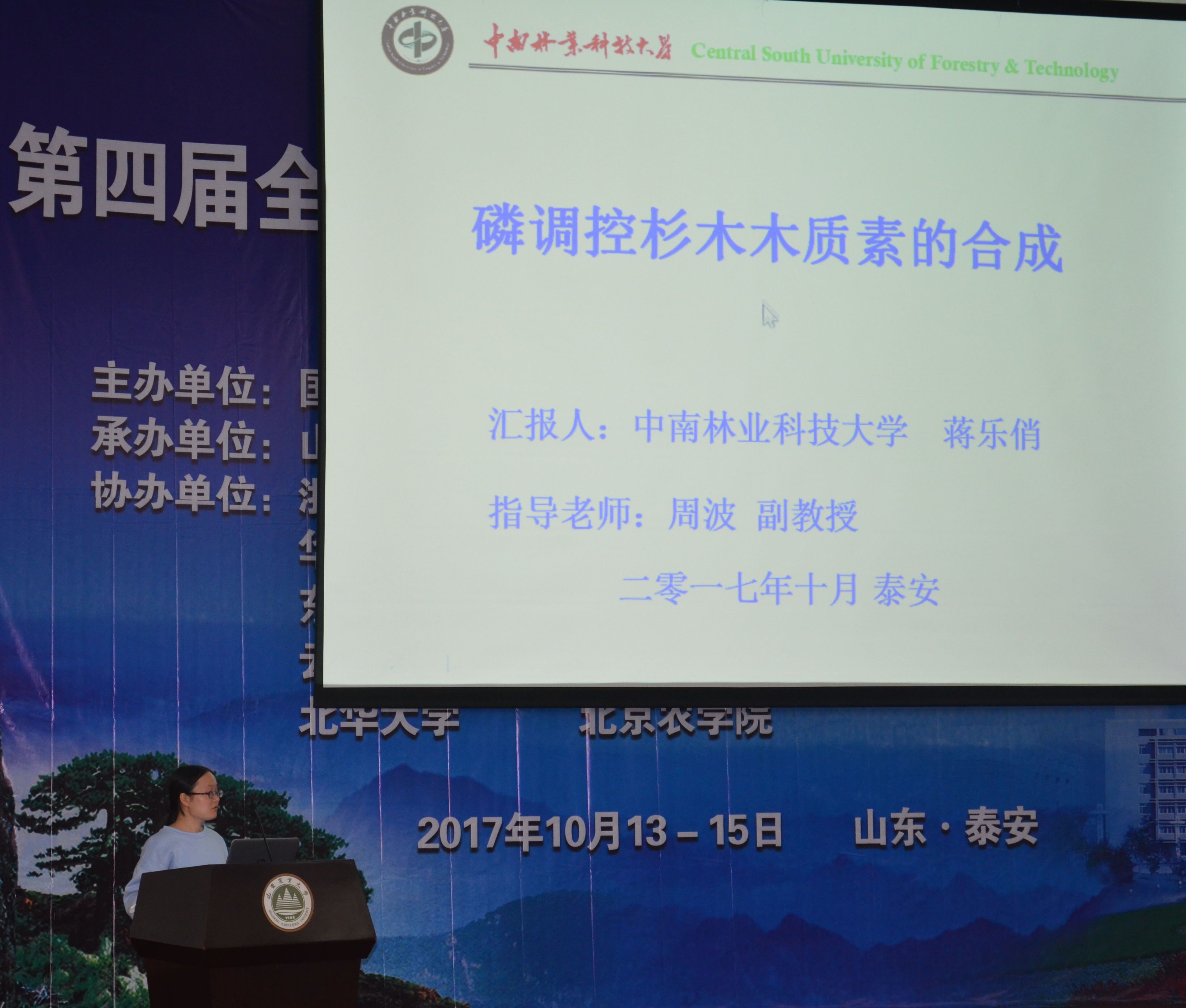 由我校生命科学技术学院周波副教授指导蒋乐俏同学撰写的学术论文《磷调控杉木木质素的合成》代表我校在会上进行交流,通过学术汇报、现场答辩等方式向现场专家组进行了展示,并在专家组集体评议后荣获论文一等奖;此外,生命科学技术学院吴顺副教授指导刘坤等同学参赛的论文《南方红豆杉细胞培养体系的建立》获得二等奖;王元清副教授指导向荣等同学参赛的论文《总量统计矩结合聚类分析与主成分分析评价虎杖一致性与差异性》获得三等奖,彭丹老师指导郭荣锴等同学参赛的论文《乌桕SsDGAT2的表达模式与油脂合成的关系研究》获得三等奖。